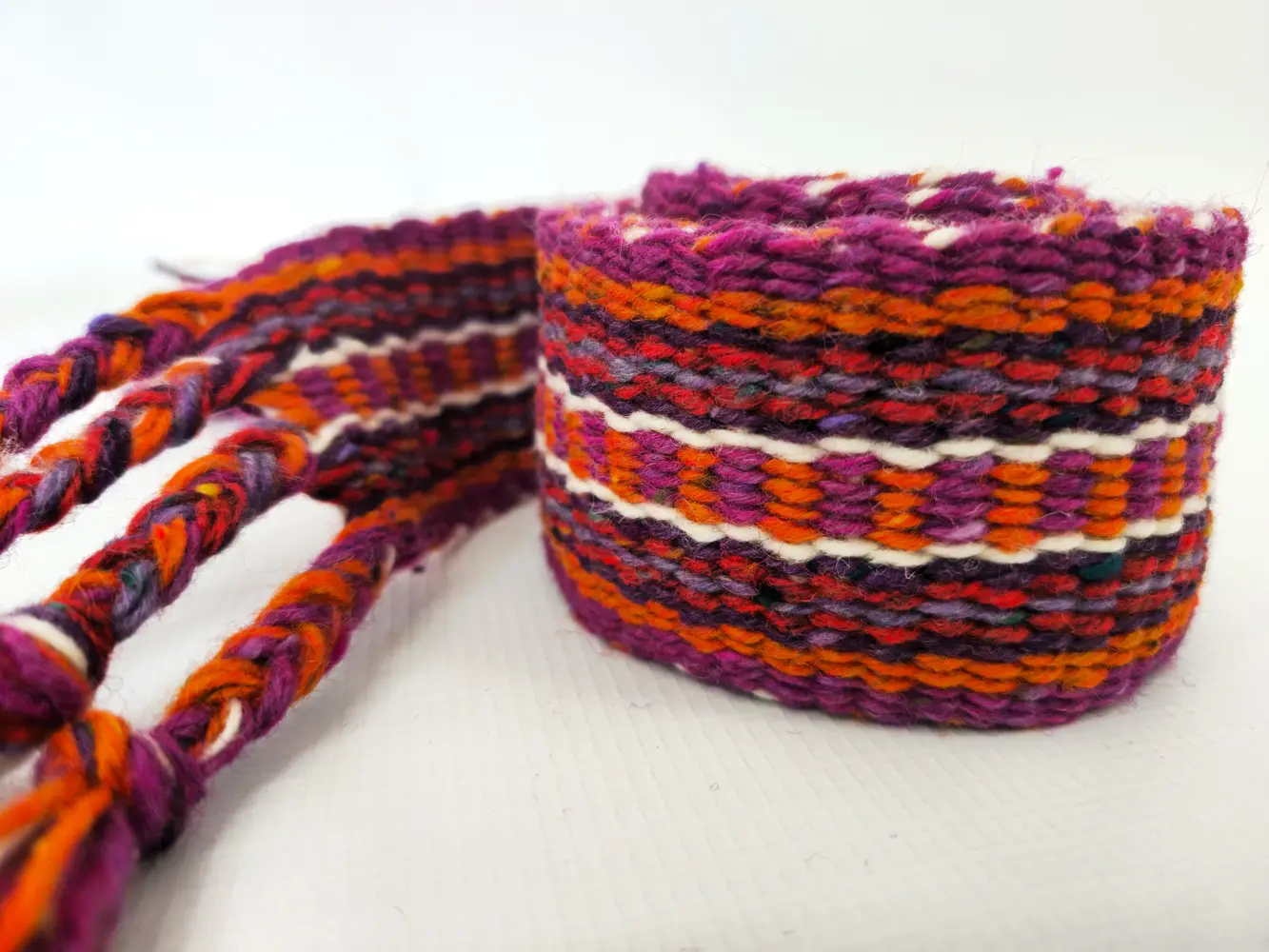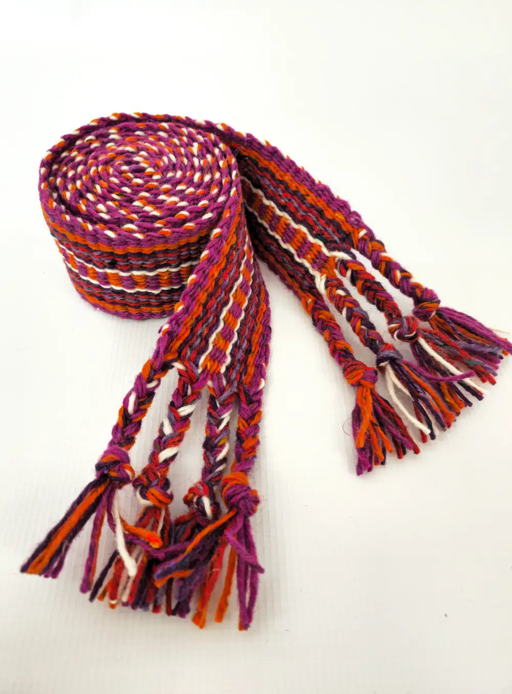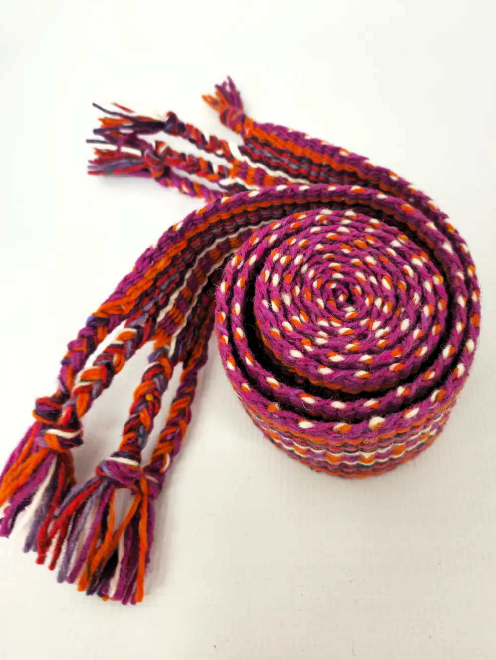 This Irish Belt – Dragon Crios was created to celebrate the “Dragons and Castles” tour’s visit to Swallow Studios on Easter Sunday 2025. This vibrant group of fibre enthusiasts, travelling with Irish Knitting Tours, arrived in search of colour, texture, and textile magic — and brought all of that in abundance.
