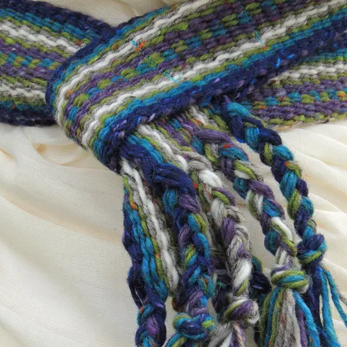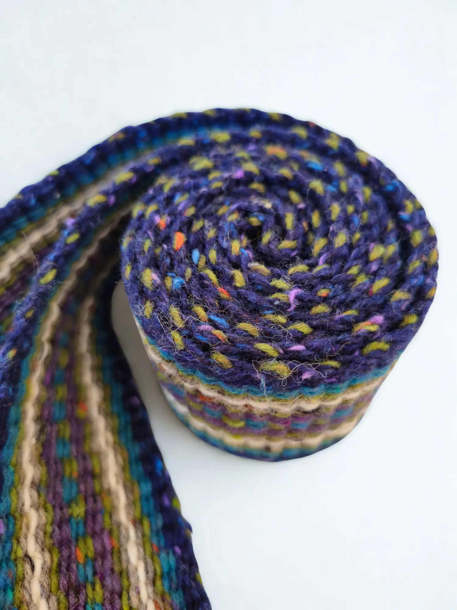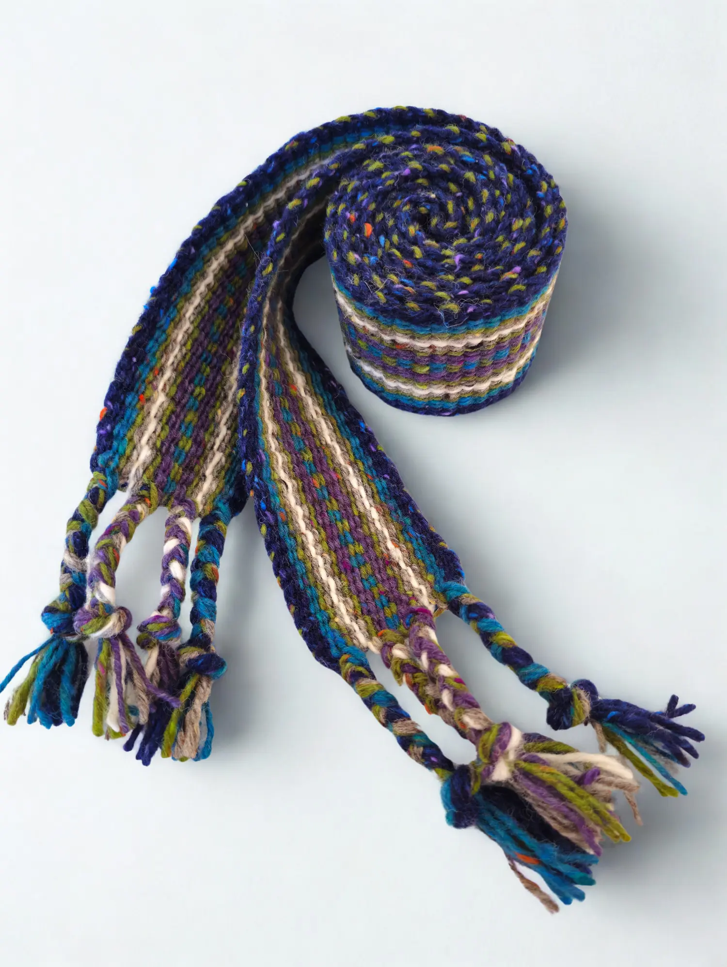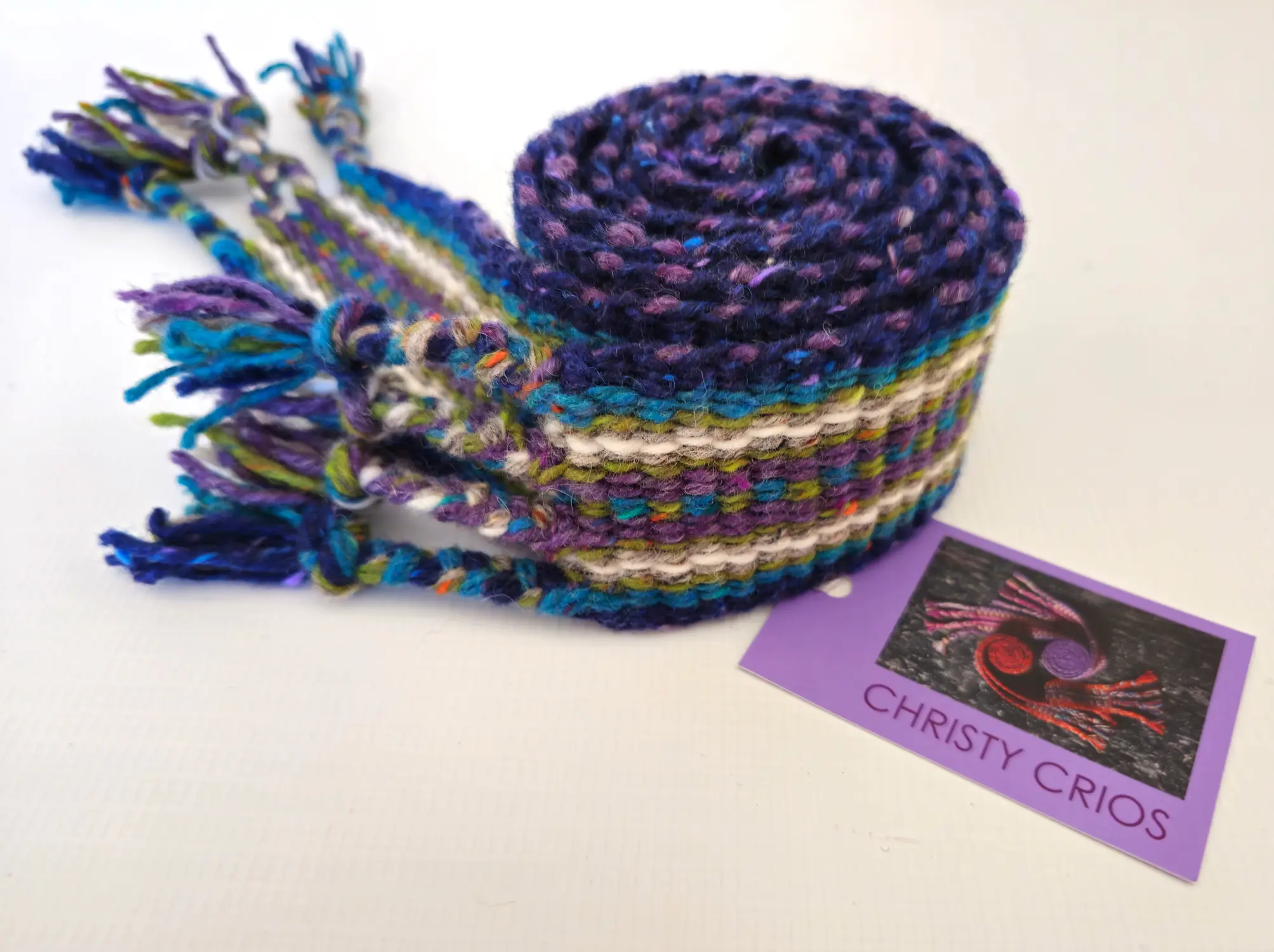 Liz has translated that layered heritage into colour: grounded, lake-deep blues and greens for Muckno; warm metal notes recalling the Victorian embellishments at the house; a clean highlight to echo the castle’s pale façade. The result is a crios belt that feels timeless—made for everyday wear, yet quietly celebratory of where we’re from.