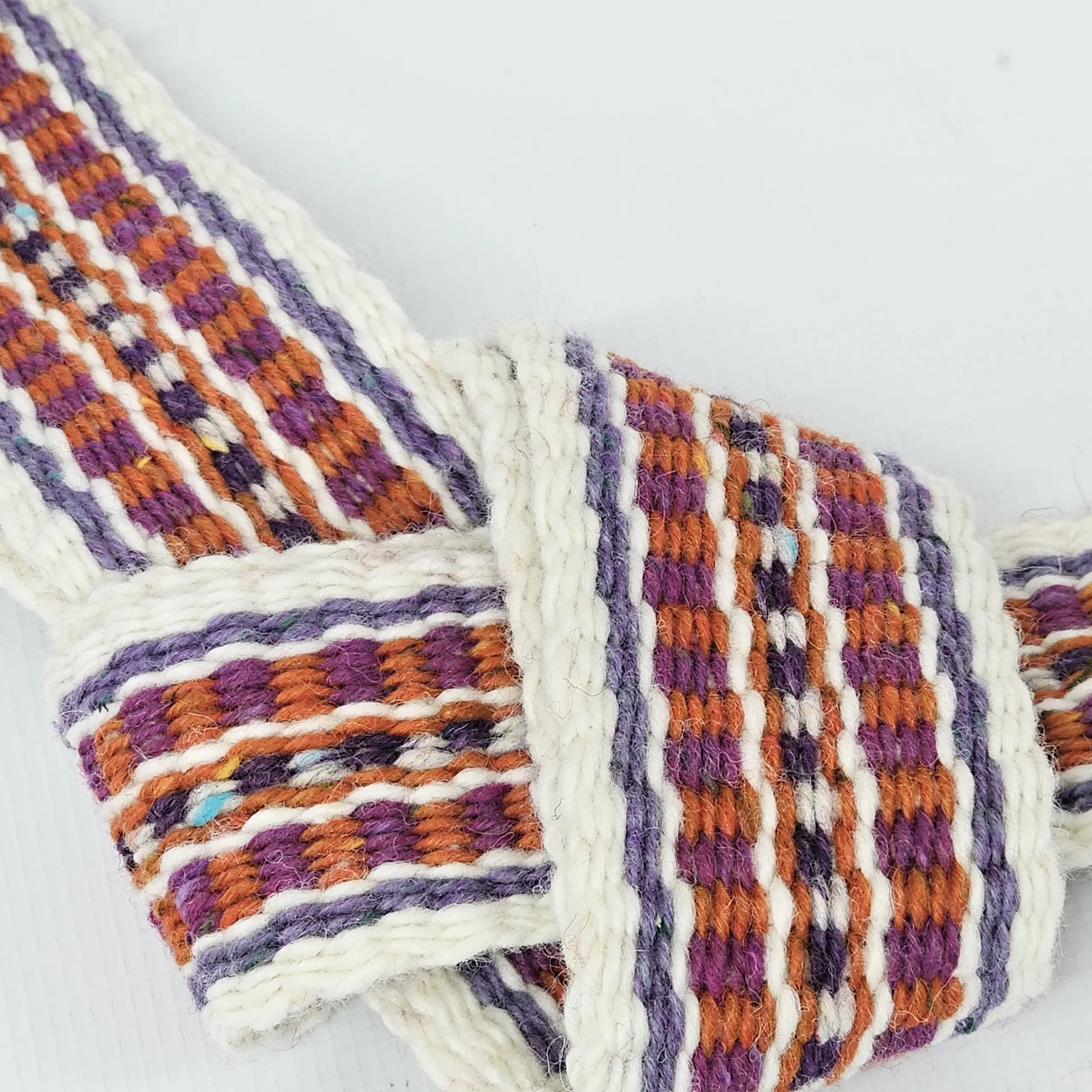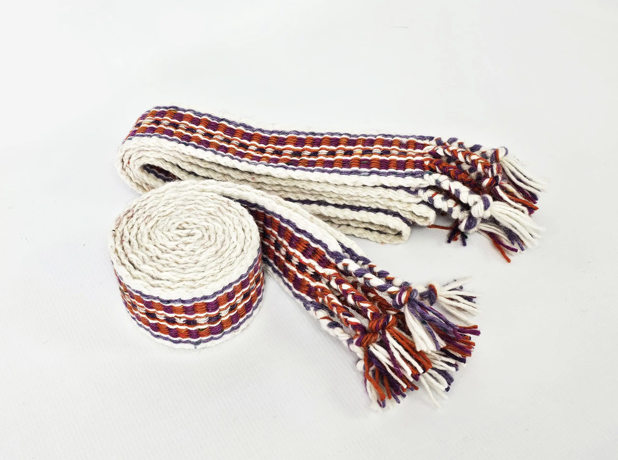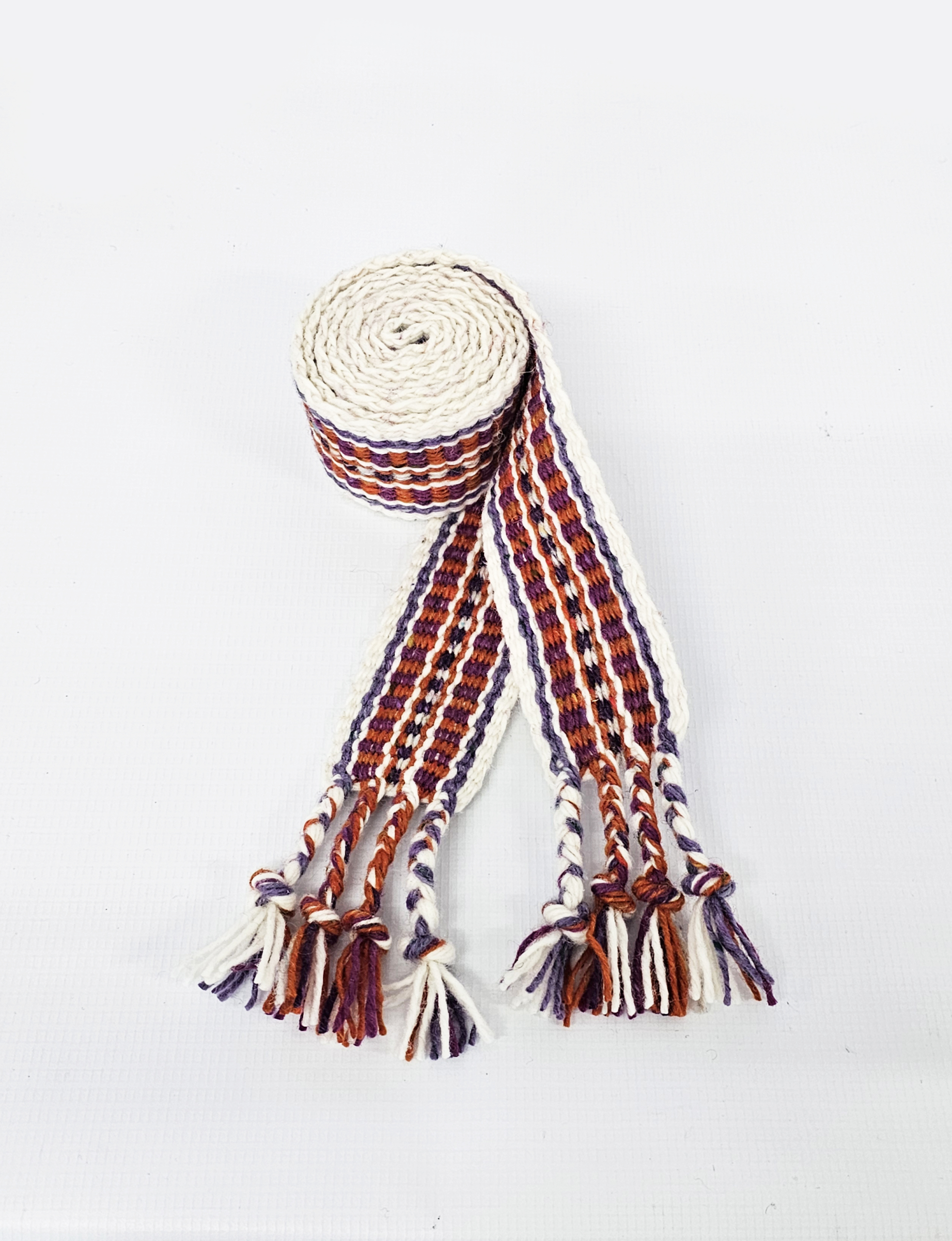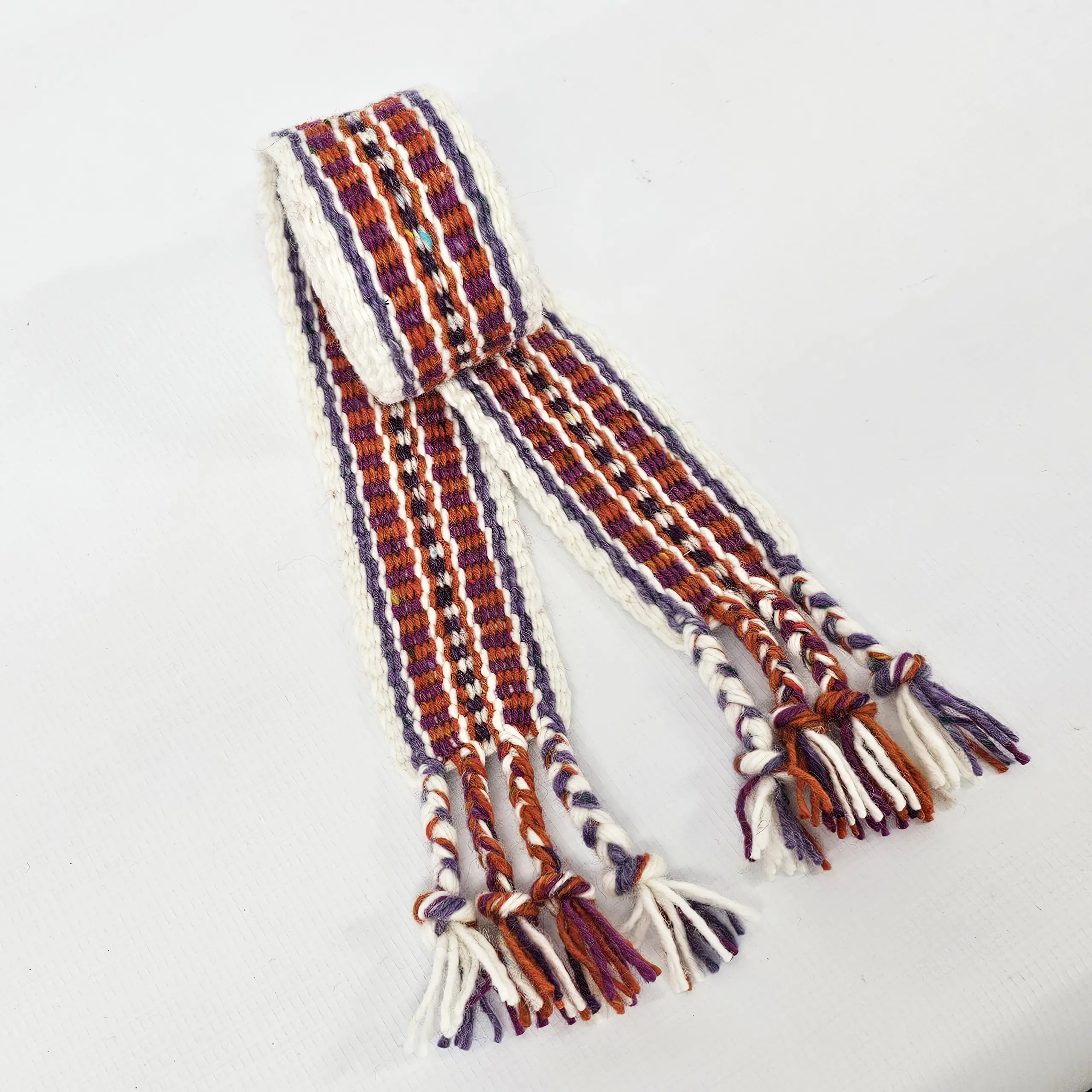 Traditionally, Crios (pronounced “Kris”, plural Crioseanna) were woven from six strands of coloured wool, often finished with a white border and worn by the men of the Aran Islands, wrapped around their tweed trousers. This modern interpretation blends tradition with personal story.