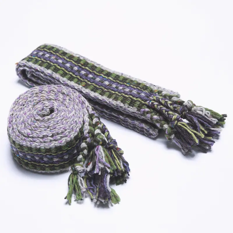 Crios (pronounced “Kris”; plural Crioseanna) belts are rooted in the traditions of the Aran Islands, where they were once worn around the waists of fishermen and farmers, bound over their tweed trousers for warmth, strength, and symbolism. Woven from six coloured strands of wool, each belt carries generations of Irish craftsmanship.